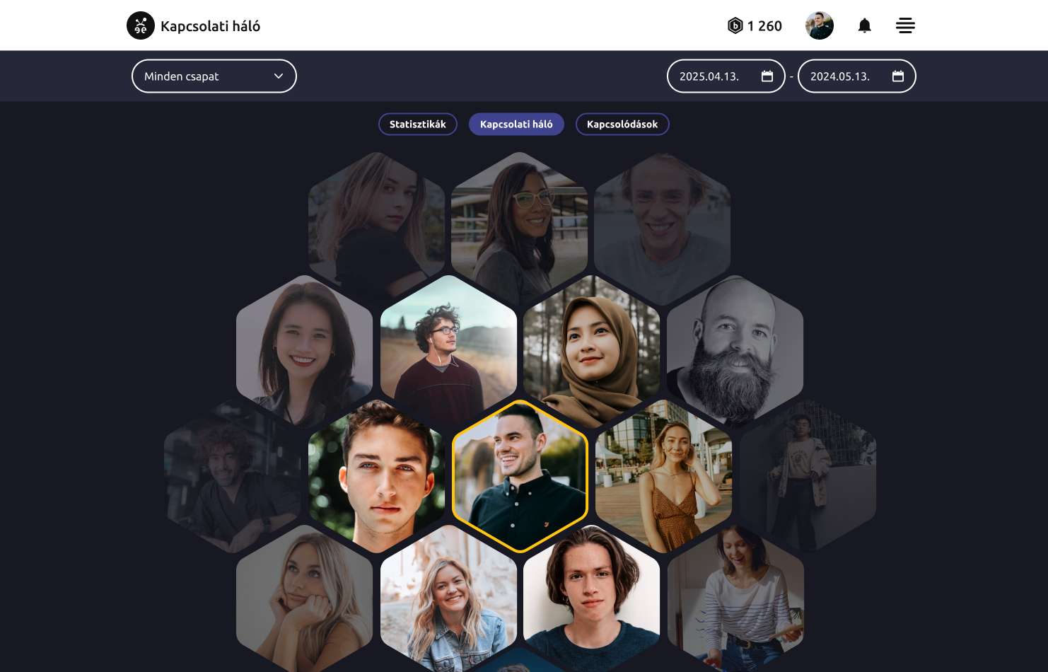 Szervezeten belüli kapcsolódások valós időben vagy megadott időszakon belül. Folyamatosan figyelemmel kísérheted a csapaton belüli dinamikát és változásokat.